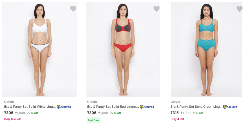 Clovia Bra & Panty Set @ Starting ₹306, Available on Flipkart.