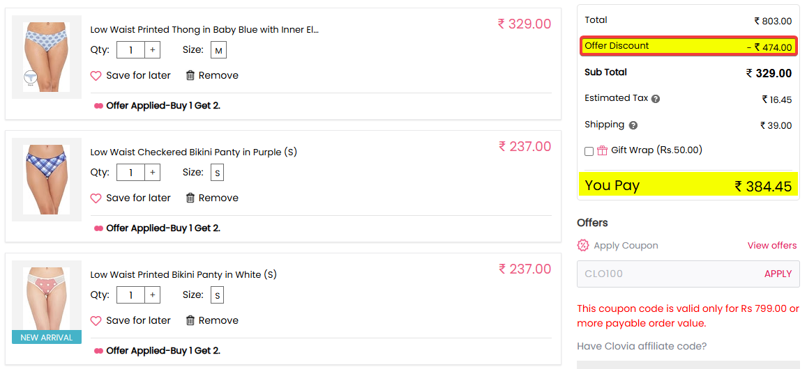 💥 Clovia Offer: Buy 1 Get 2 Free Panties