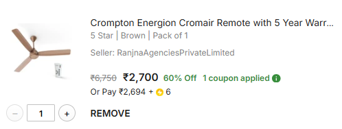 Crompton Energion Cromair Remote 5 Star 1200 mm 3 Blade Ceiling Fan (BLDC Motor with Remote | Brown | Pack of 1).