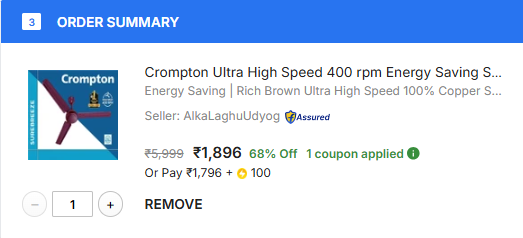 Crompton Ultra High Speed 400 rpm Energy Saving SUREBREEZE Superior Quality Copper10 1 Star 1200 mm 3 Blade Ceiling Fan (Energy Saving | Rich Brown Ultra High Speed 100% Copper Superior Quality10 | Pack of 1).