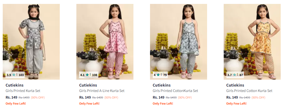 Cutiekins Girl's Kurtas Sets starting @ ₹149