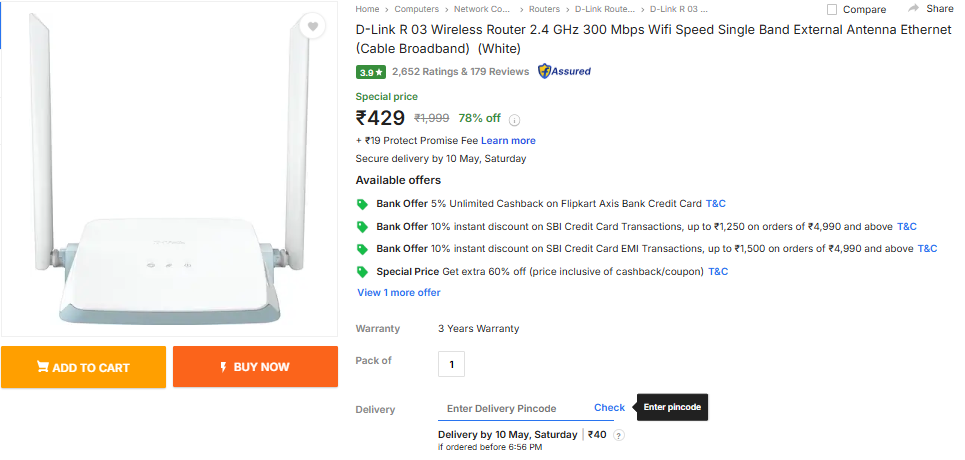 D-Link R 03 Wireless Router 2.4 GHz 300 Mbps Wifi Speed Single Band External Antenna Ethernet (Cable Broadband (White)