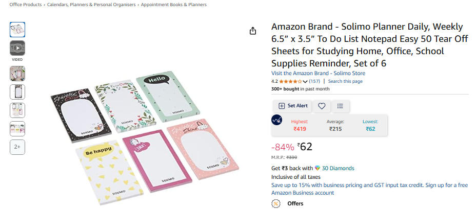 Amazon Brand - Solimo Planner Daily, Weekly 6.5” x 3.5” To Do List Notepad Easy 50 Tear Off Sheets for Studying Home, Office, School Supplies Reminder, Set of 6