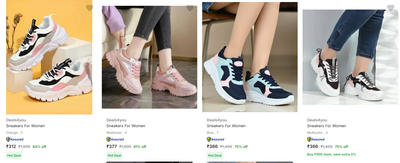 Deals4you Women's Casual Shoes upto 84% Discount available online in India on Flipkart. This deal was updated by @radhika on 11th January, 2026 at 3:44 PM.