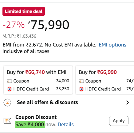 Apply ₹4000 Coupon + ₹3250 Off HDFC CC