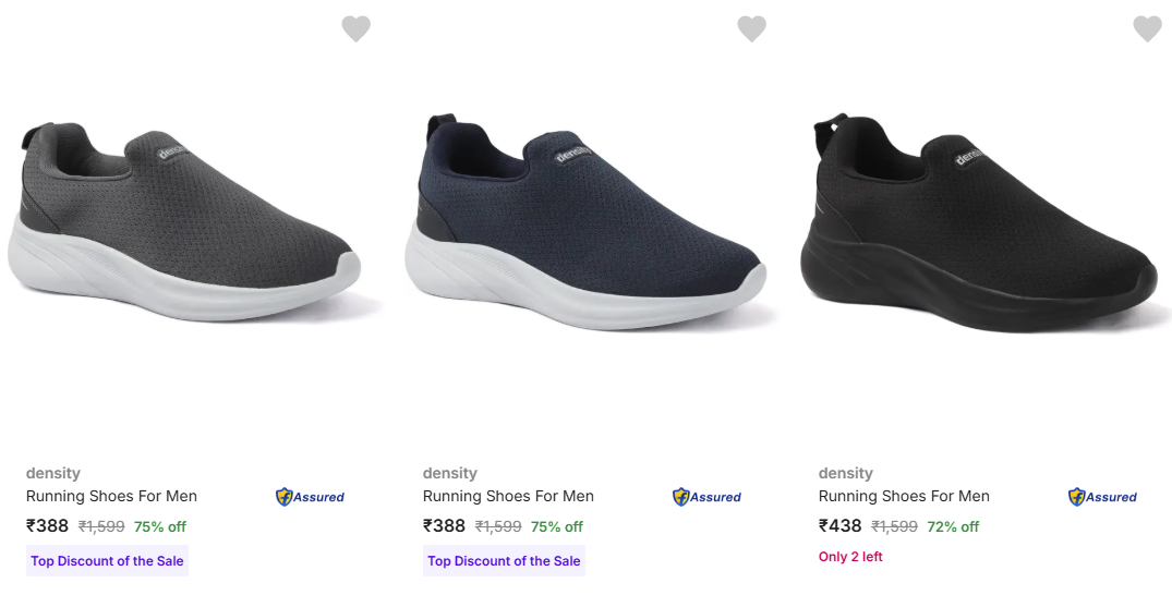Density Men’s Sports Shoes at minimum 70% Discount available online in India (70% discount from MRP) on Flipkart. Discount: 70%. This deal was updated by @radhika on 24th October, 2025 at 7:15 PM.