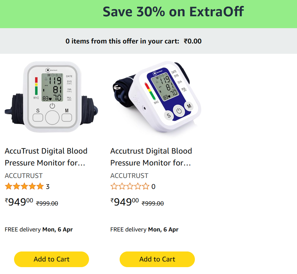 Digital Blood Pressure Monitor with Large LCD for ₹664, Available on Amazon.