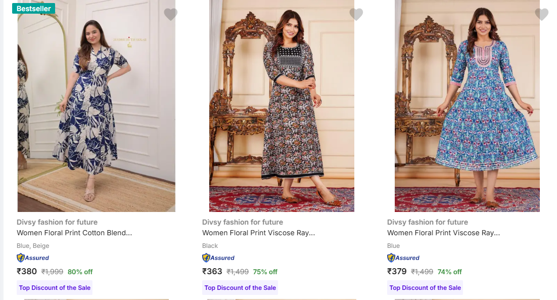 Divsy Fashion Women's Kurtas upto 80% Discount available online in India on Flipkart. This deal was updated by @radhika on 11th October, 2025 at 2:49 PM.