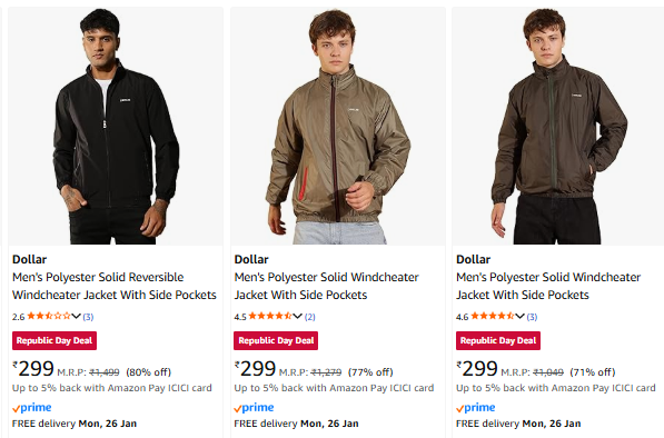 Dollar Men's Windcheater Jacket Starting at ₹299