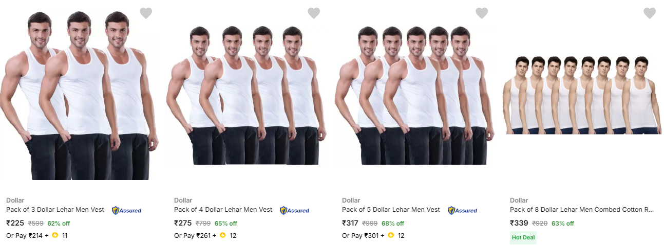 Dollar Men's Vests @ Minimum 60% Discount, Available on Flipkart.