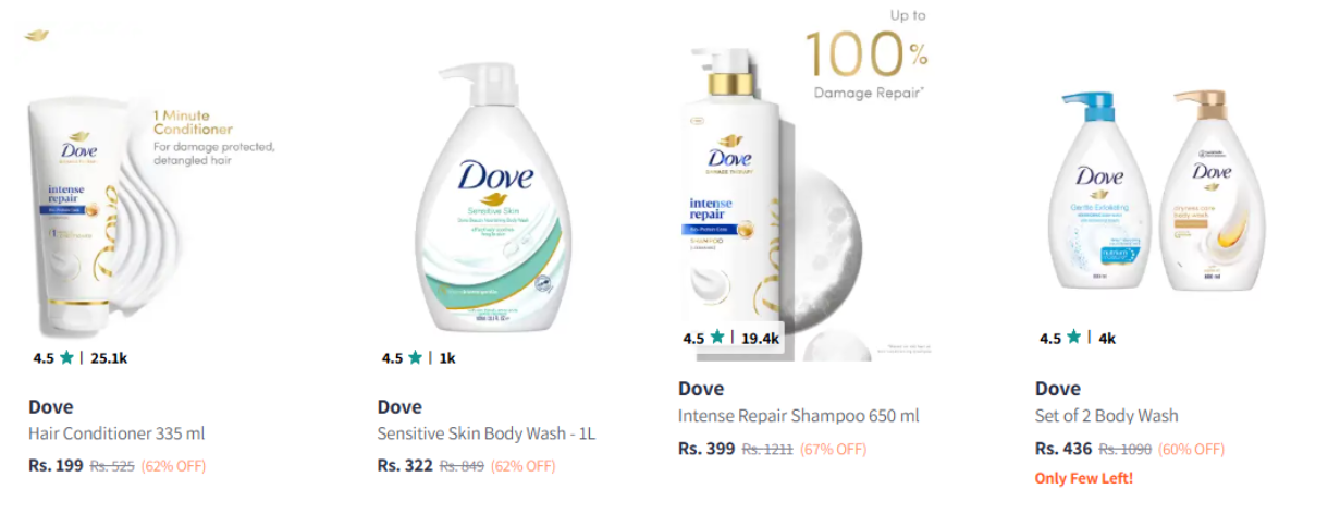 Dove Body & Hair Care Products upto 67% Discount is available on Myntra.