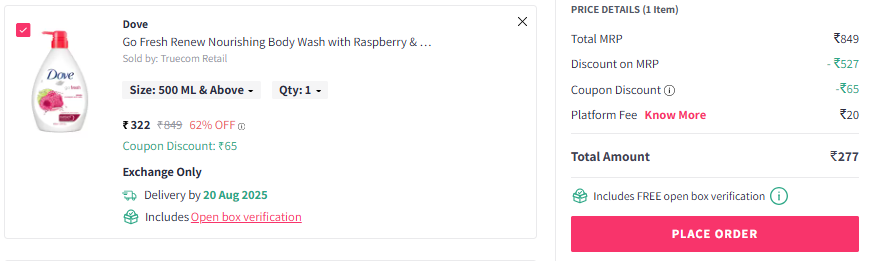 Dove Go Fresh Renew Nourishing Body Wash with Raspberry & Lime - 1L