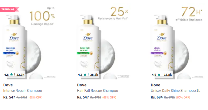 Dove Hair Care Products Upto 68% Discount on Myntra.