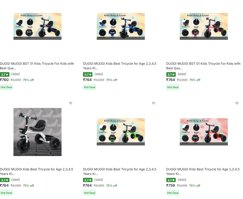 Duggi Muggi Tricycles @ Starting ₹760, Available on Flipkart.