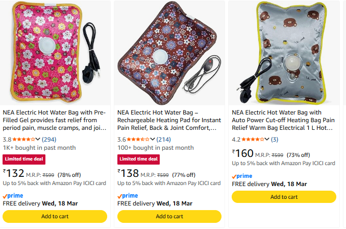 Electric Hot Water Bag Starting @ ₹132 on Amazon.