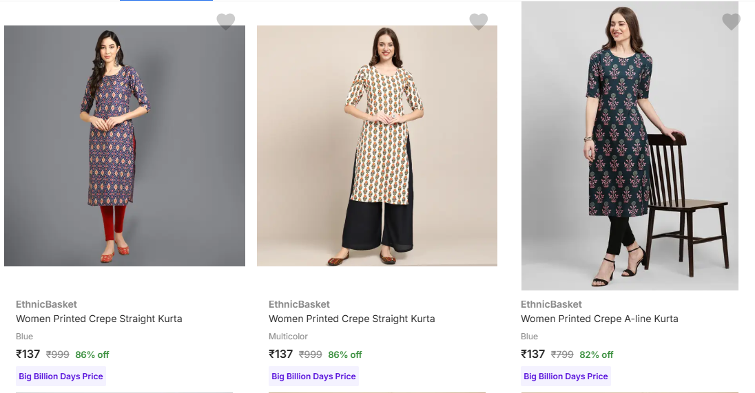 Ethnicbasket Women's Kurtas upto 86% Discount is available on Flipkart.