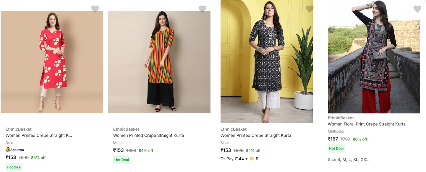 EthnicBasket Wsomen's Kurti upto 84% Discount is available on Flipkart.