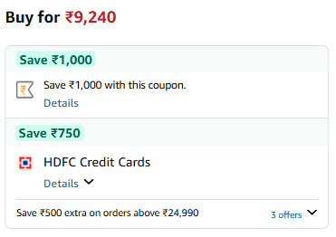 Incl. ₹2100 Off HDFC CC+ ₹1000 Off with Coupon