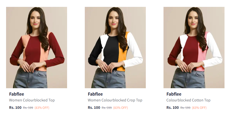 Fabflee Women’s Cotton Colorblocked Crop Top Starting @ ₹100 Available on Myntra