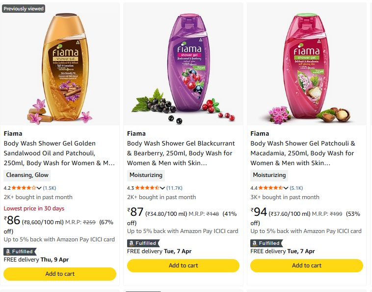 Fiama Shower Gel @ Starting ₹86, Available on Amazon.