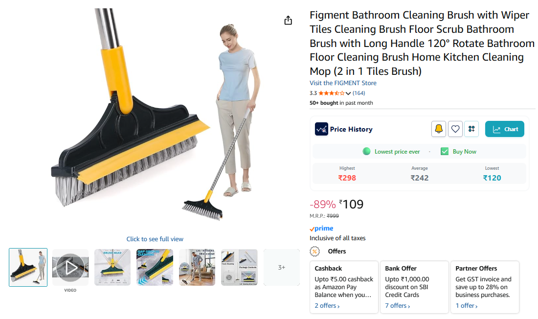 Figment Bathroom Cleaning Brush with Wiper Tiles Cleaning Brush Floor Scrub Bathroom Brush with Long Handle 120° Rotate Bathroom Floor Cleaning Brush Home Kitchen Cleaning Mop (2 in 1 Tiles Brush)