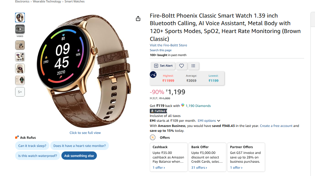 Fire-Boltt Phoenix Classic Smart Watch 1.39 inch Bluetooth Calling, AI Voice Assistant, Metal Body with 120+ Sports Modes, SpO2, Heart Rate Monitoring (Brown Classic)