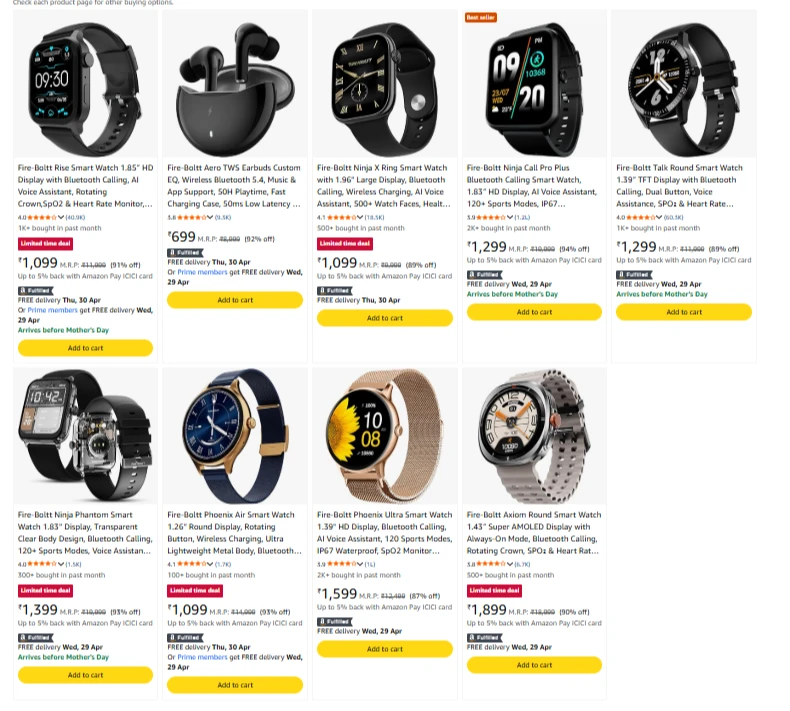 Fire-Boltt Product @ 90% Discount is available online in India on Amazon.