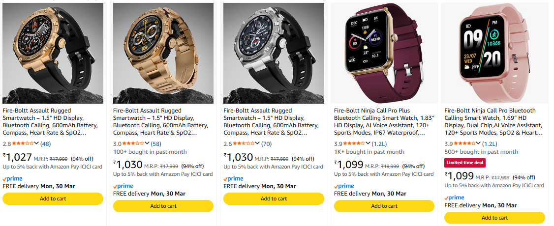 Fire-Boltt Smart watches at Minimum 94% Discount.