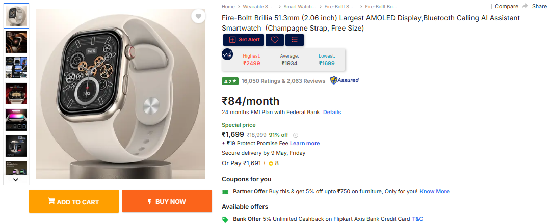 Apply 3% Couponfire boltt Ninja CallPro Plus (1.83 inch) HD Display Smart Watch, Bluetooth Calling Smartwatch (Black Strap, Free Size)
