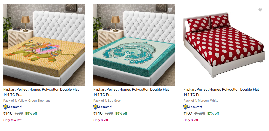 Flipkart Perfect Homes Bedsheets upto 87% Discount | Starting at ₹140 is available on Flipkart.