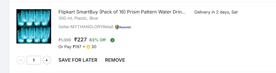 Flipkart SmartBuy (Pack of 16) Prism Pattern Water Drinking Sky Colored Glass Set Water/Juice Glass (300 ml, Plastic, Blue)