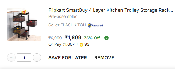 Flipkart SmartBuy 4 Layer Kitchen Trolley Storage Rack Square Design Fruits & Vegetable Basket Iron Kitchen Trolley (Pre-assembled).