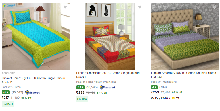Flipkart SmartBuy Bedsheets at minimum 82% Discount is available on Flipkart.