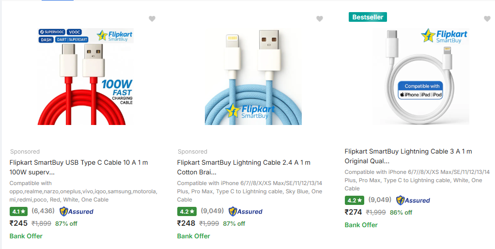 Flipkart Smartbuy Mobile Cables Upto 87% Off On Flipkart