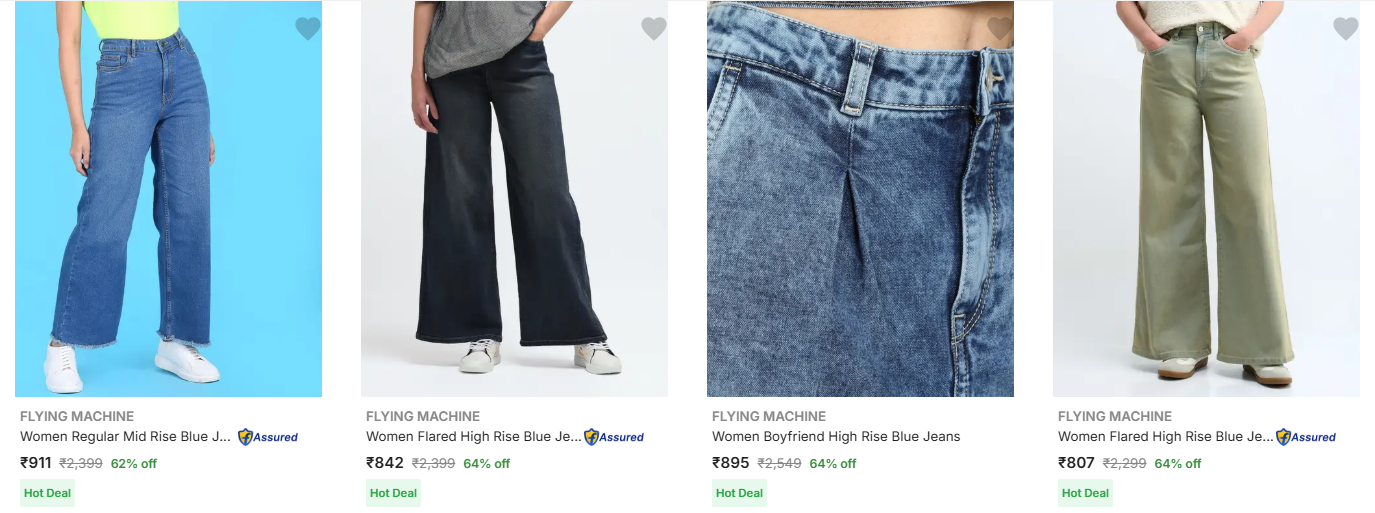 Flying Machine Women's Jeans at minimum 60% Discount is available on Flipkart.