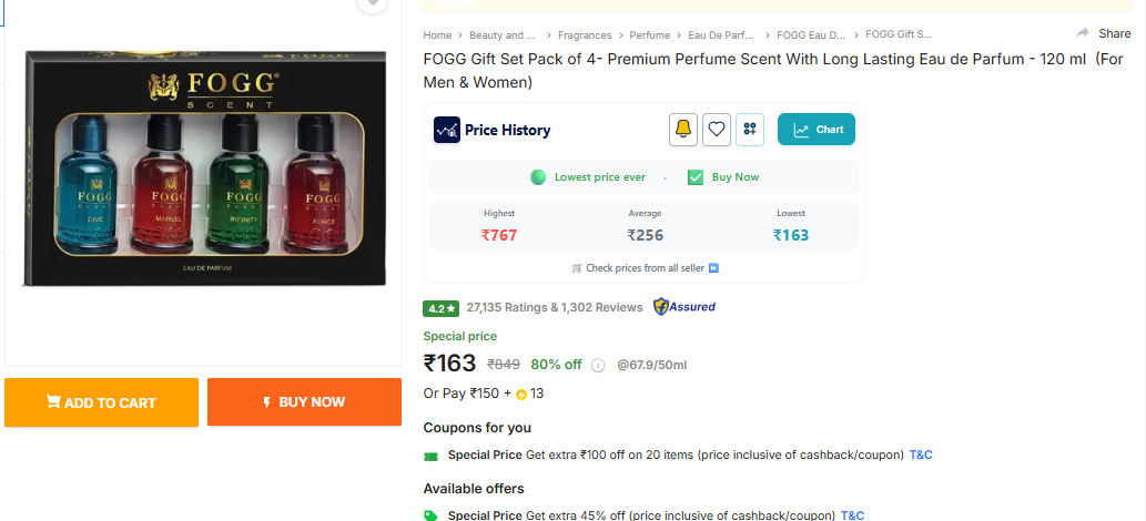 FOGG Gift Set Pack of 4- Premium Perfume Scent With Long Lasting Eau de Parfum - 120 ml (For Men & Women)