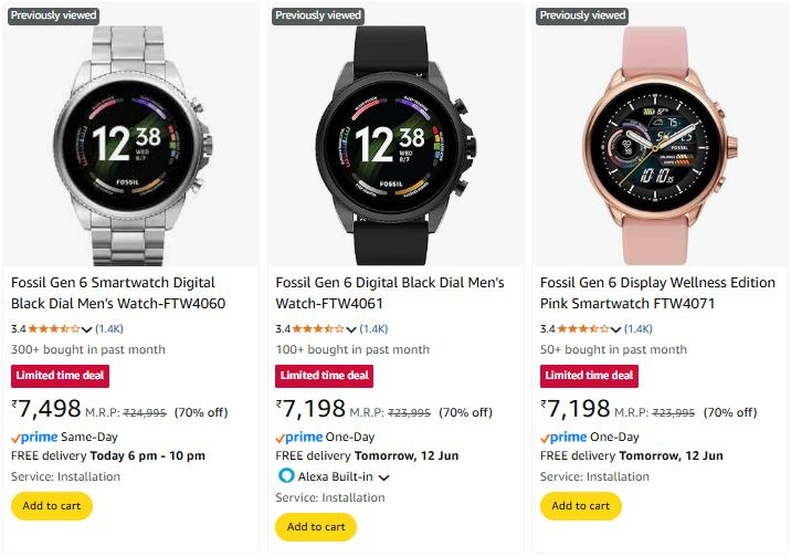 Fossil Gen 6 Smartwatch @ Flat 70% Discount, Available on Amazon.
