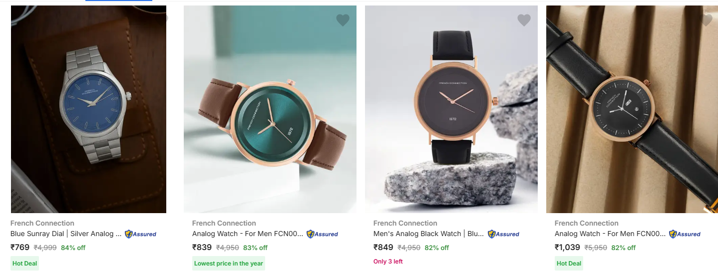 French Connection Men's Wrist Watches upto 84% Discount is available on Flipkart.