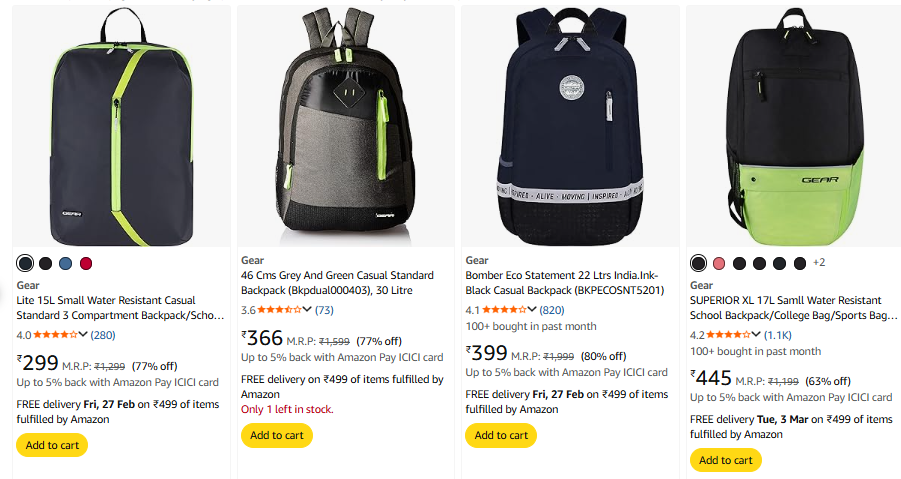 Gear Backpack Starting @ ₹299 On Amazon.