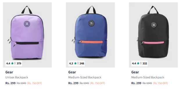 Gear Backpacks @ Start ₹299, Available on Myntra.