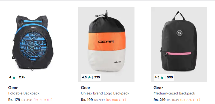 Gear Backpacks starting @₹199