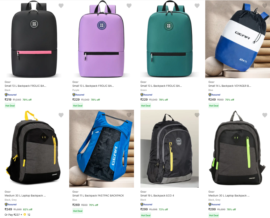 Gear Bags & Backpacks starting @ ₹219 only.