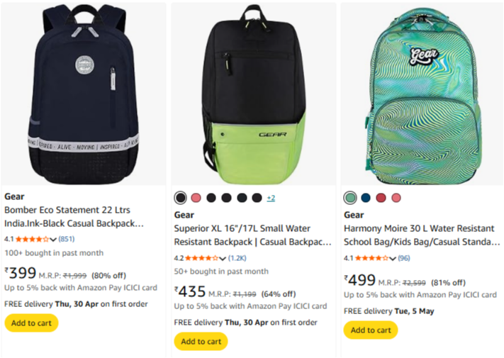 Gear Bags @ Minimum 80% Discount is available online in India (80% off) on Amazon.