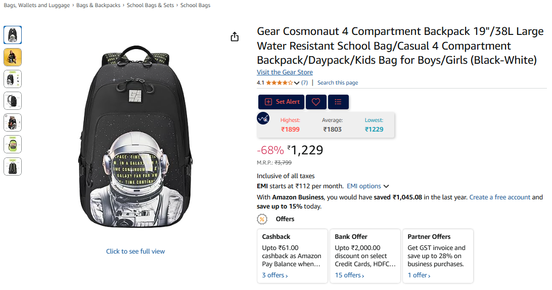 Gear 7 Pocket 30 L Backpack / Water Resistant School Bag / Casual Backpack / Daypack / Travel Backpack / Kids Bag / College Bag for Boys / Girls / Men / Women (Black)
