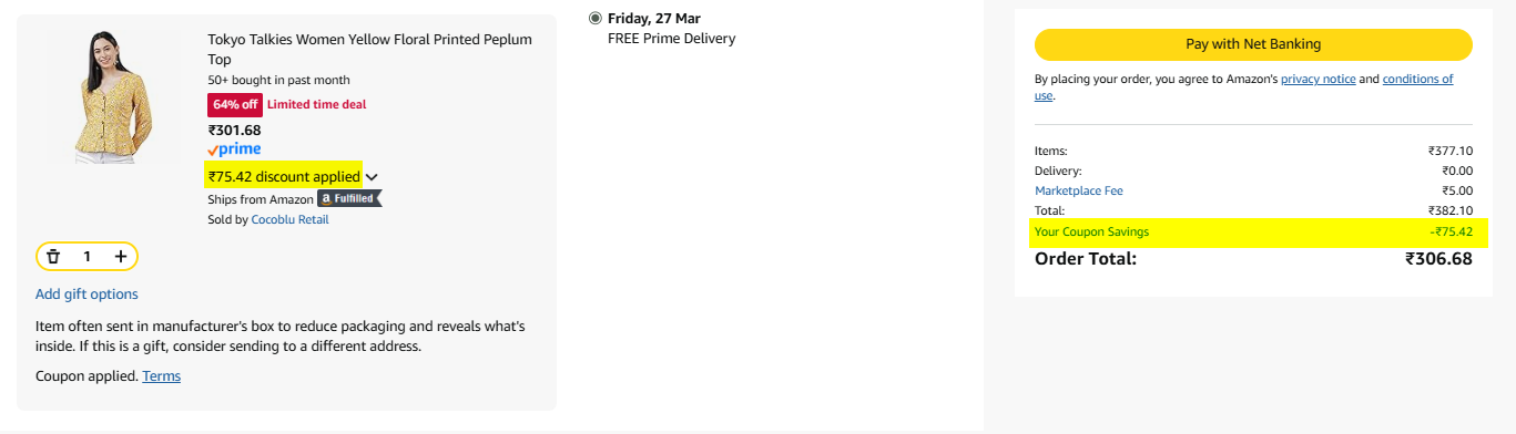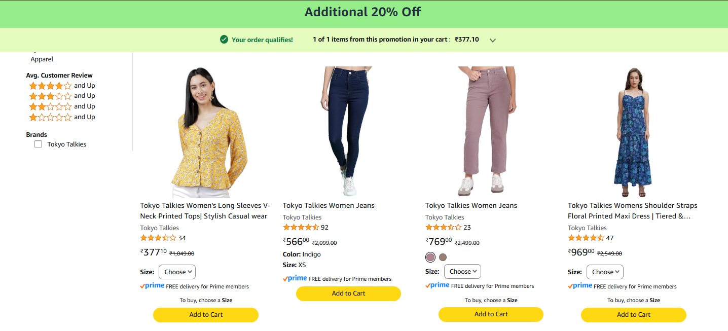Get Extra 20% Off on Tokyo Talkies Women's Clothing is available on Amazon.