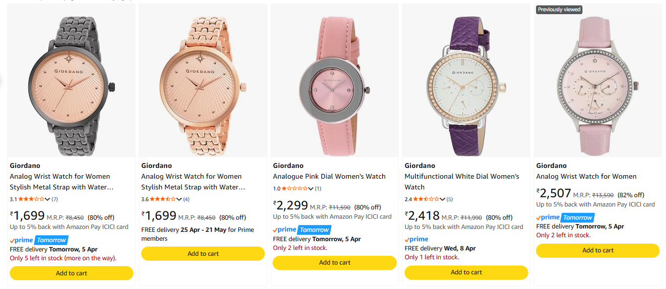 Giordano Women's Watch at minimum 80% Discount available online in India (80% discount from MRP) on Amazon. Discount: 80%. This deal was updated by @radhika on 04th April, 2026 at 9:59 AM.