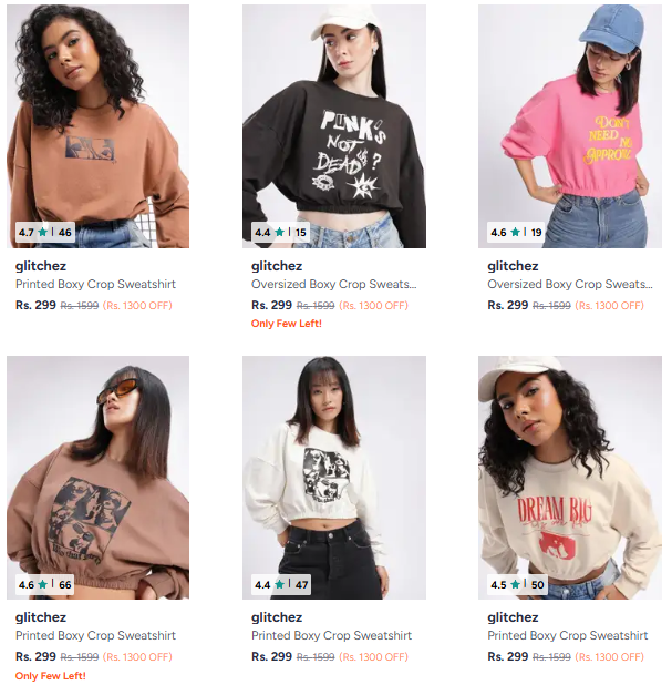 Glitchez Women's Sweatshirts @ Starting ₹299, available on Myntra.