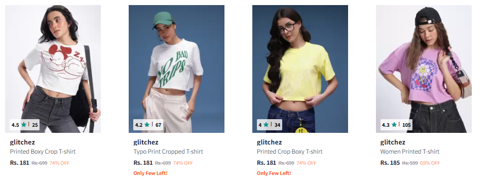 Glitchez Women's Tshirts starting @ ₹181