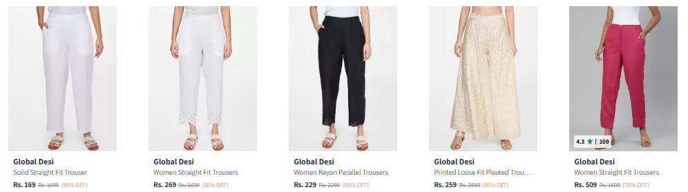Global Desi Solid Straight Fit Trouser starting @ ₹169