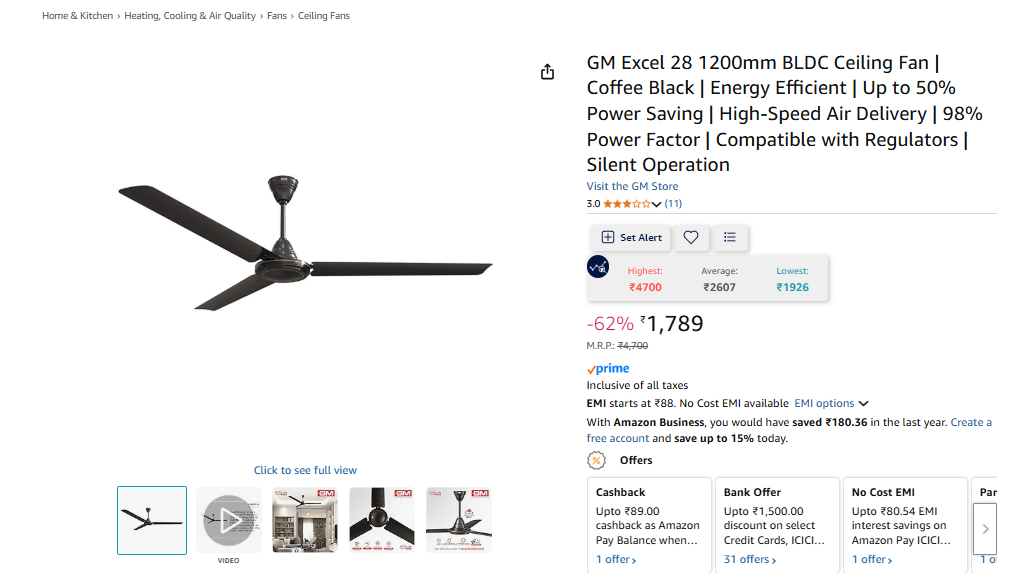 GM Excel 28 1200mm BLDC Ceiling Fan | Brown | 5-Star Rated | Up to 50% Energy Savings | High Efficiency | Uniform Speed Regulation | Super Silent | Premium Copper Motor | Regulator Friendly.